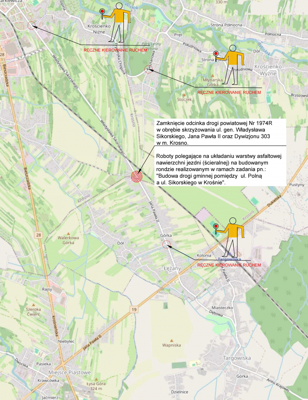 Zamknięte skrzyżowanie Sikorskiego / Rokowiec / Dywizjonu / Jana Pawła II (4.11)