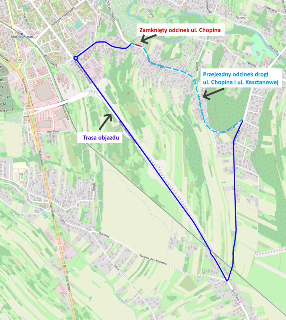 Na czas zamknięcia zostanie wyznaczony objazd ulicami: Chopina, Kasztanowa, Grunwaldzka, Dywizjonu 303, Sikorskiego, Wieniawskiego.