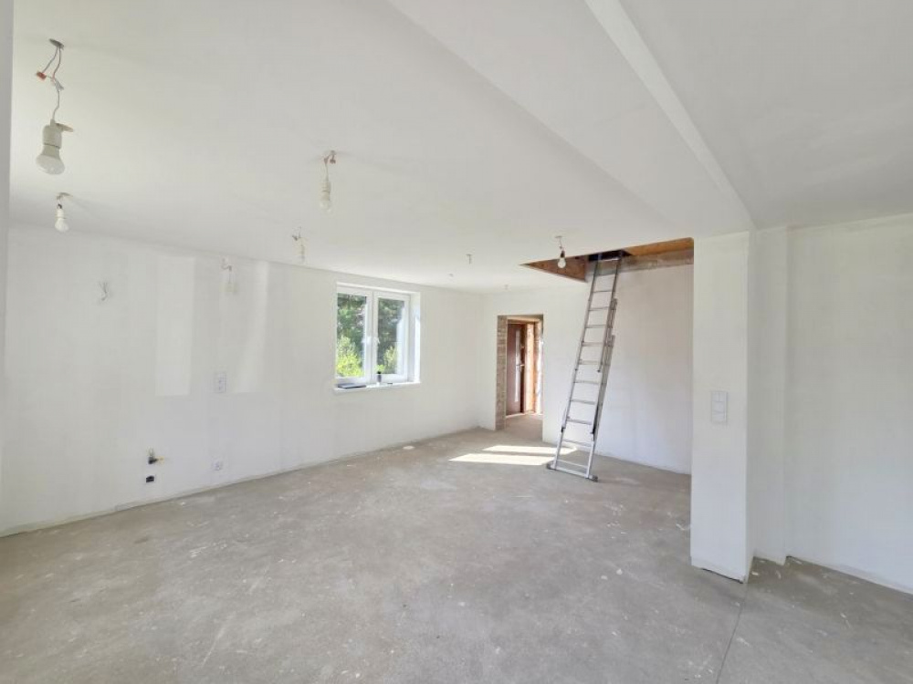 Parter: salon z aneksem kuchennym, jadalnią i wyjściem na ogród (planowany taras), sypialnia, wiatrołap oraz przestronna łazienka, Poddasze: możliwość adaptacji, np. na dwa pokoje i toaletę.