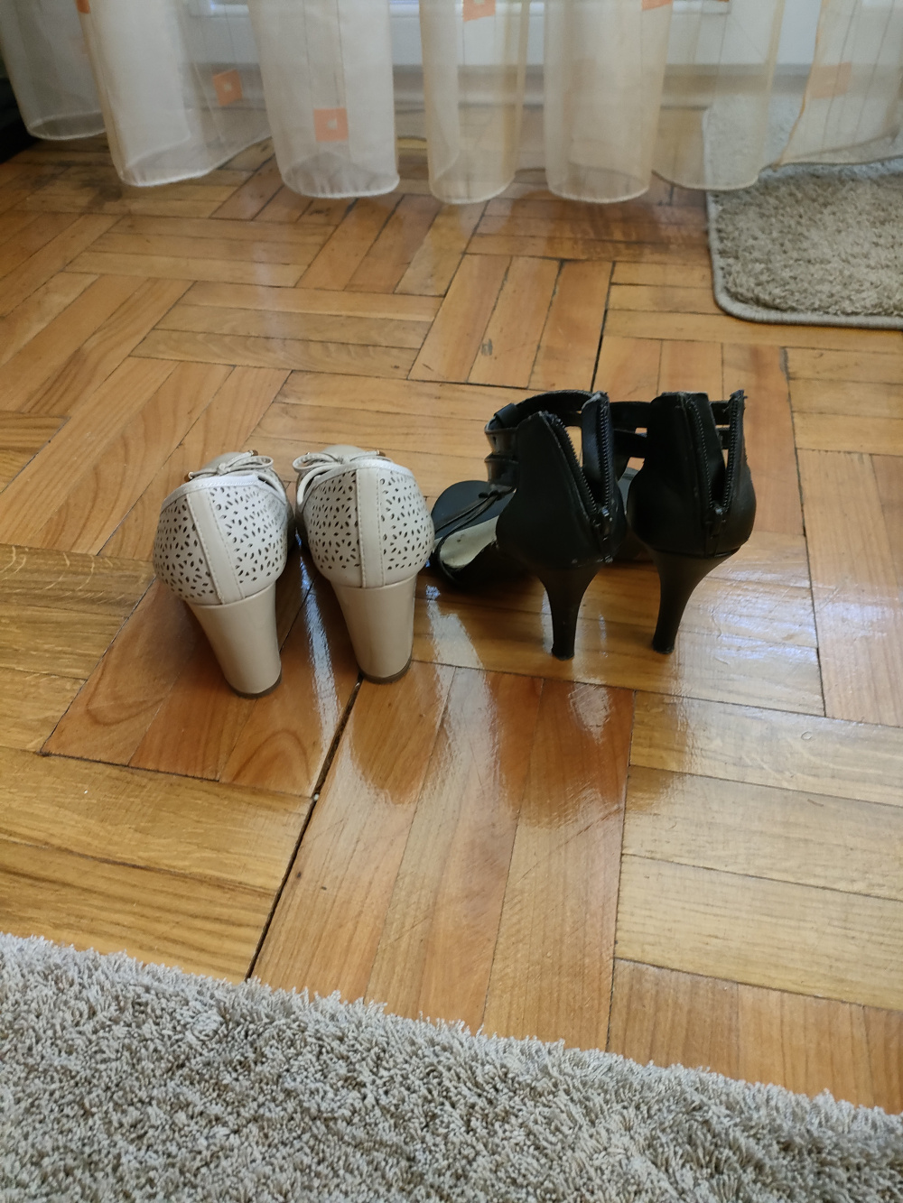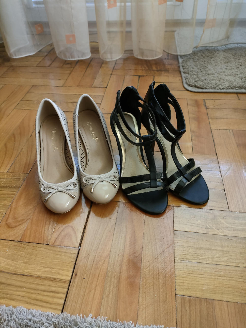 Jedna para to beżowe , druga to czarne sandały na obcasie.