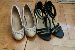 Dwie pary używanych damskich butów w rozmiarze 35.