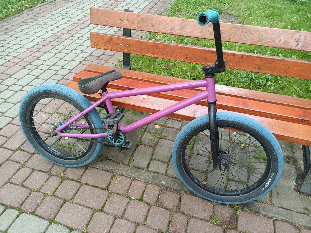 rzecz przy rowerach wyczynowych. Do wymiany są korby, pedały (jeden pedał jest pęknięty),oraz gripy, śruby mają rdzę. Rower jest idealny na początek swojej przygody, posiada również głośną piastę oraz mostek od mafiabikes.