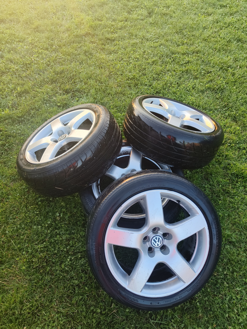 Mam na sprzedaż 4 felgi aluminiowe 17' Volswagen Et38 wraz z oponami.