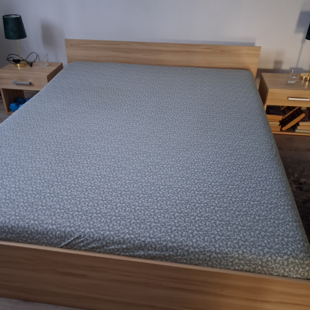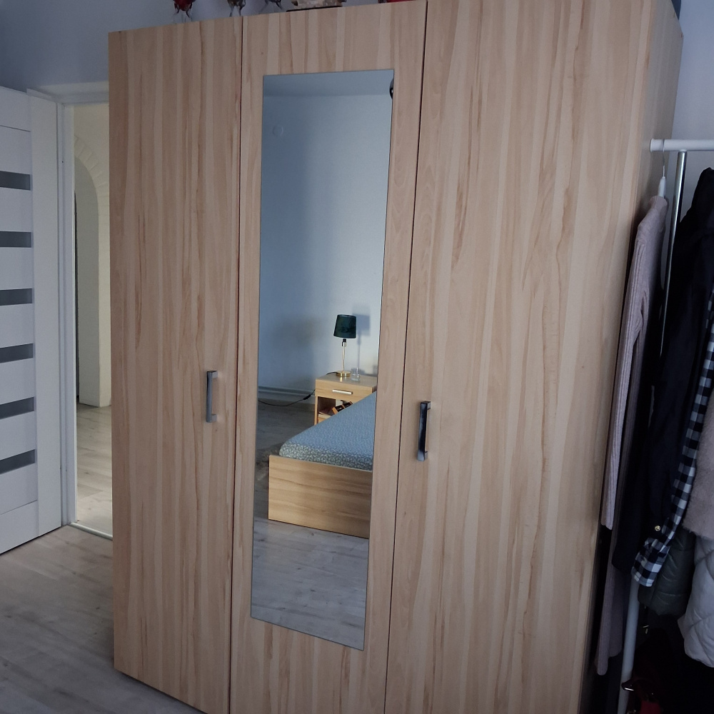 szafa 150 szer×205wys, lozko160×200 bez materaca, komody 2 sztuki 70×75, 2 stoliki nocne 33×37 dąb sonoma. Wszystko w stanie dobrym, cena do negocjacji, zapraszam do zakupu