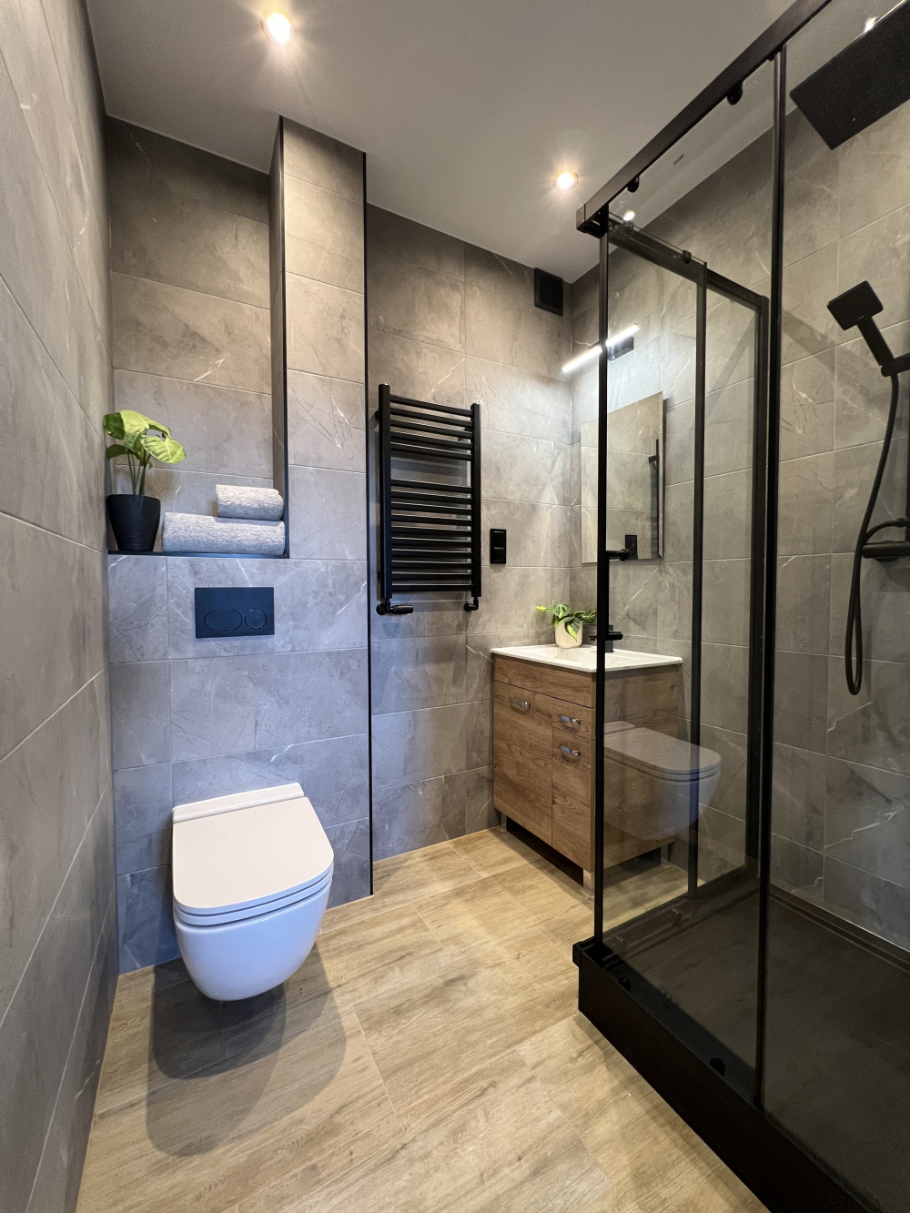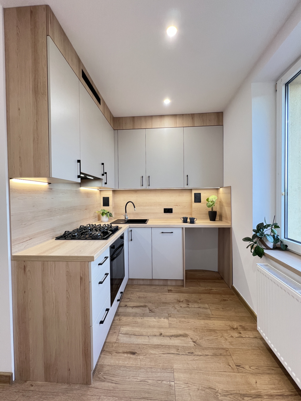 Mieszkanie po remoncie – wymieniono podłogi, drzwi wejściowe i wewnętrzne, wykonano nową kuchnię w zabudowie oraz całkowicie odmieniono łazienkę. W mieszkaniu została wykonana nowa instalacja centralnego ogrzewania oraz zamontowano nowy piec gazowy, który odpowiada za ogrzewanie i ciepłą wodę.
