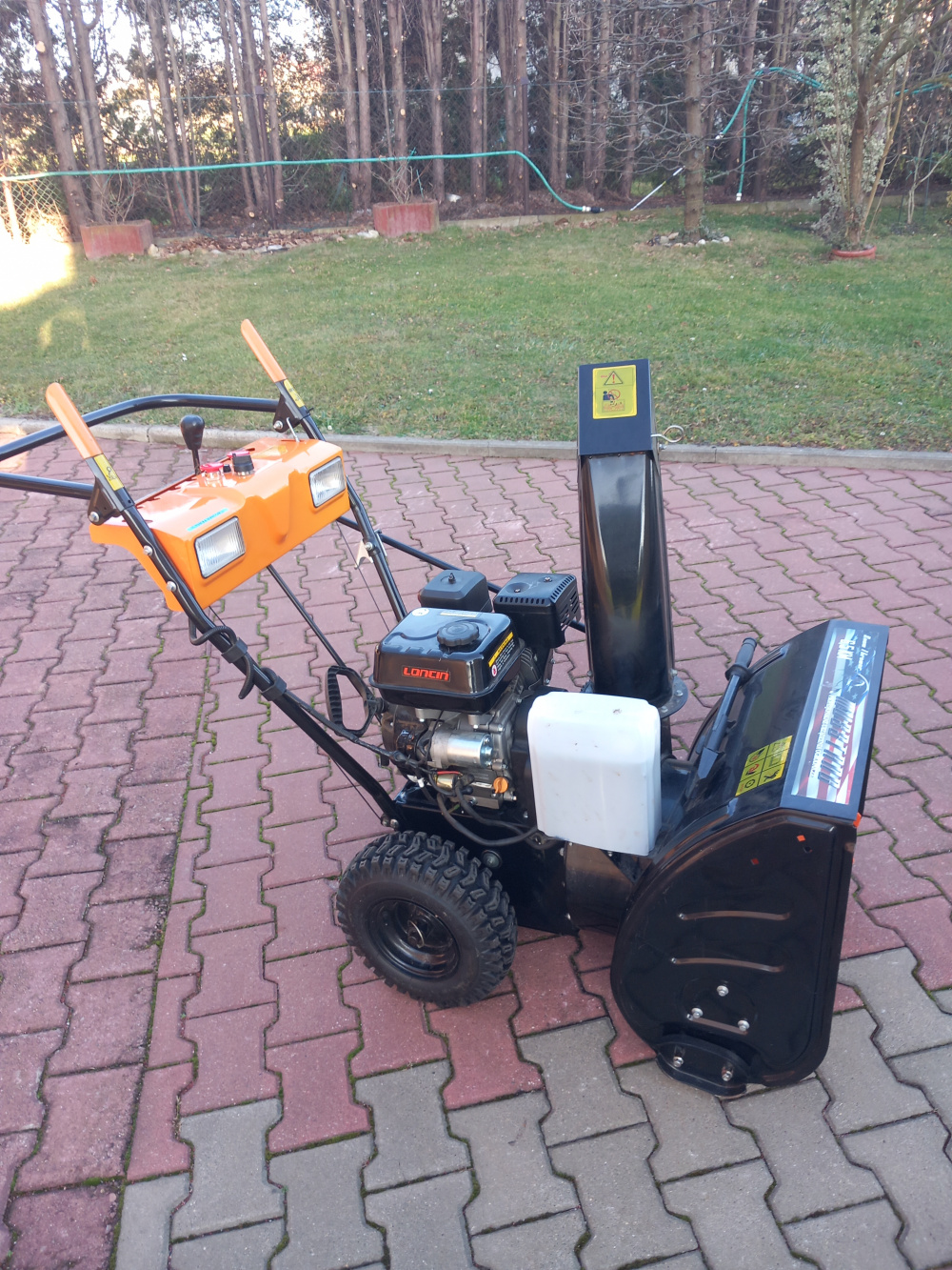 Sprzedam odśnieżarkę spalinową do śniegu Musstang z silnikiem Loncin 6,5KM. Rok prod 2011. Ilość biegów przód -4, tył-2. Rozruch ręczny i elektryczny. Nowy akumulator. Oświetlenie. Szer robocza 56cm. Koła 13x4.10-6. Mało używana, stan idealny.