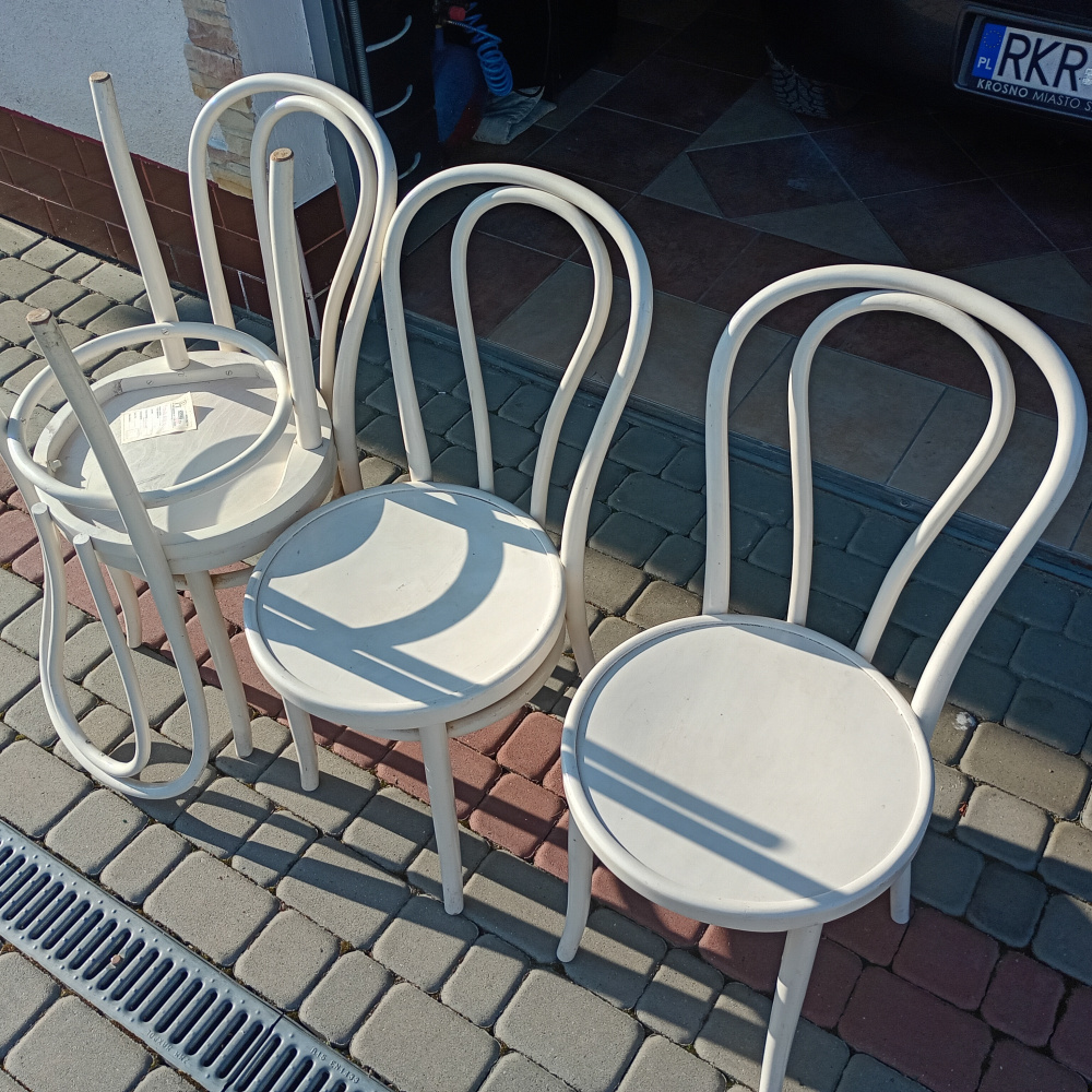 Sprzedam krzesła drewniane białe. 4 sztuki. Cena za komplet 300 zł.