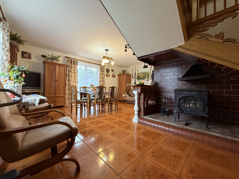 Dom jest ocieplony styropianem o grubości 15 cm, co zapewnia dobrą izolację termiczną. Ogrzewanie realizowane jest za pomocą pieca gazowego, a dodatkowym źródłem ciepła jest kominek znajdujący się... (pokaż całość)
