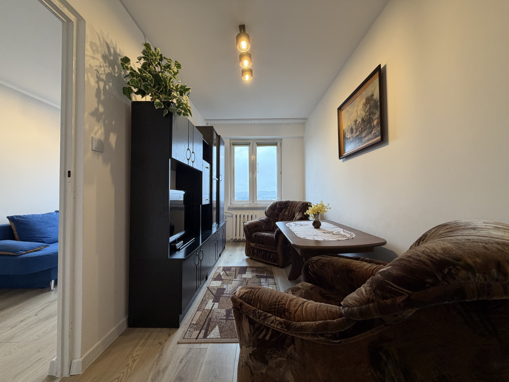 Do mieszkania przynależy balkon a także piwnica, oferująca dodatkowe miejsce do przechowywania. Ogrzewanie oraz woda wliczone są w miesięczny czynsz.
