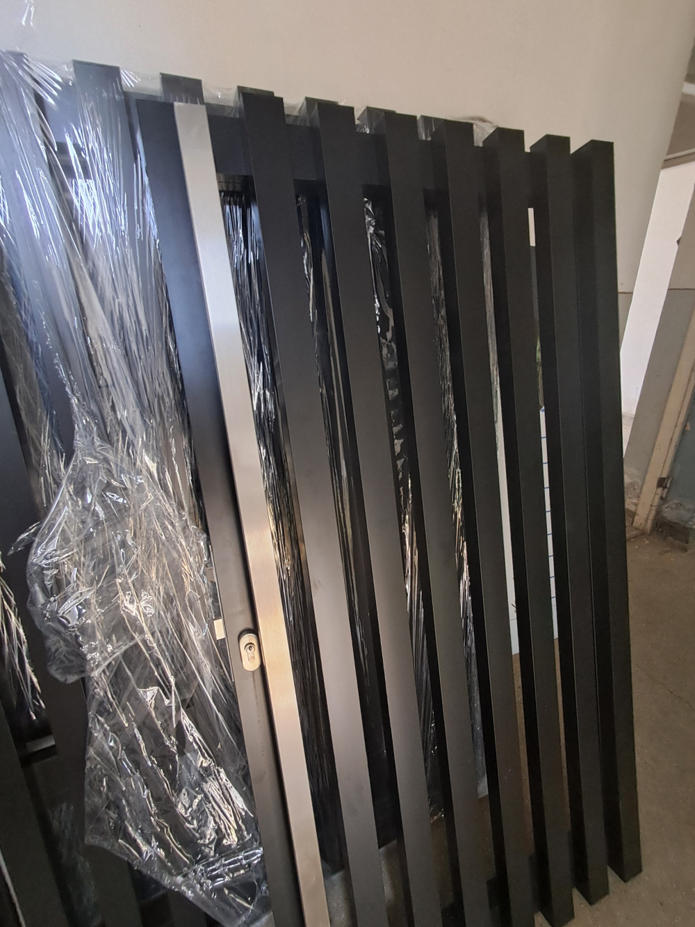 Jedna furtka posiada pochwyt nierdzewny szczotkowany o długości 1600, druga furtka z e-zamkiem