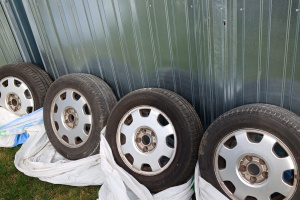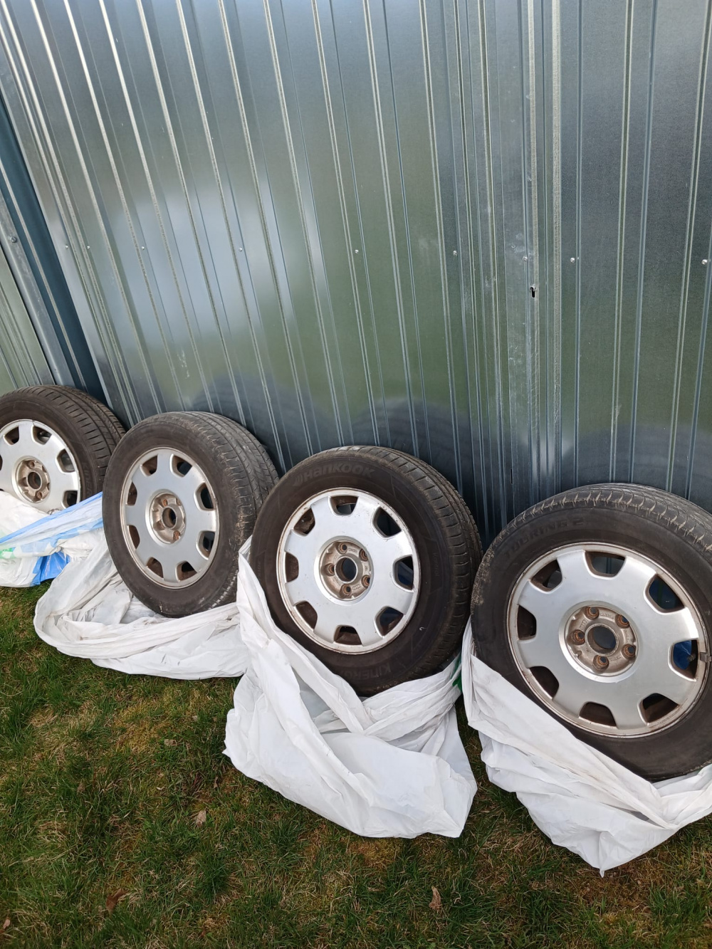 Do sprzedania komplet kół letnich na oryginalnych alufelgach Audi 15 cali.