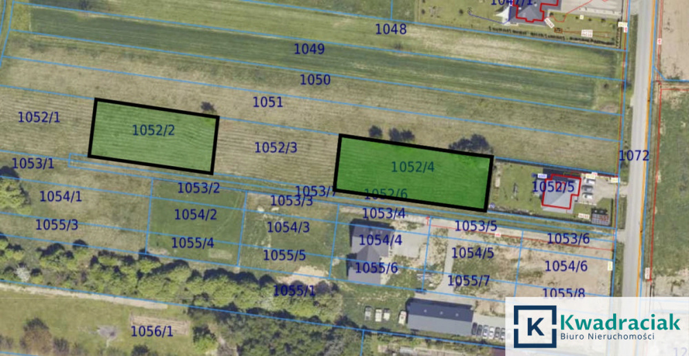 Działka nr 1052/2 – powierzchnia 10,25 ara (4 linia zabudowy), wymiary ok. 21 x 51 m