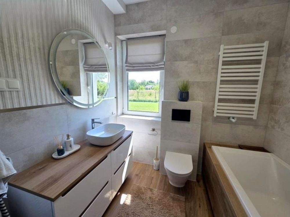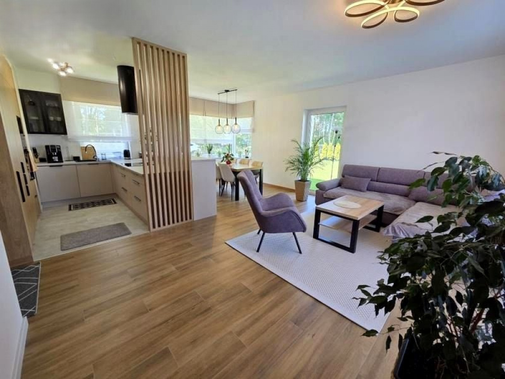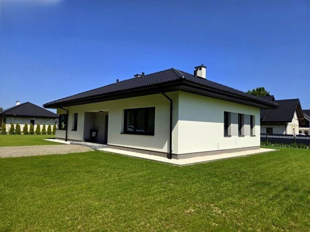 Na sprzedaż nowy oddany do użytku w grudniu 2024r. parterowy dom o powierzchni 105 m². Położony na 14-arowej, w pełni ogrodzonej działce. Składa się z kuchni połączonej z salonem, trzech pokoi, garderoby, dwóch łazienek , kotłowi, umeblowany. Standard wykończenia wysoki. Dom jest nowoczesny, ocieplony, wyposażony w okna trzyszybowe, kryty dachówką. Ogrzewanie gazowe podłogowe w całym domu... (pokaż całość)