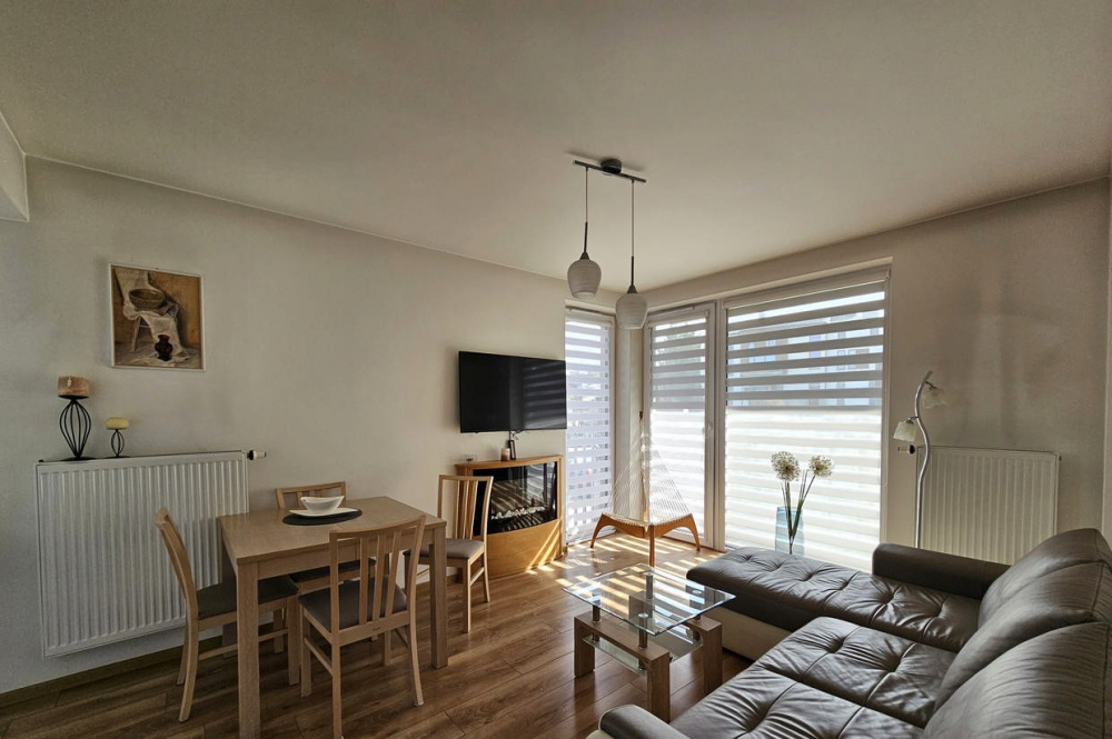 Mieszkanie jest bardzo dobrze doświetlone, w pełni umeblowane, idealne dla osób ceniących prywatność, wygodę oraz doskonałą lokalizację.