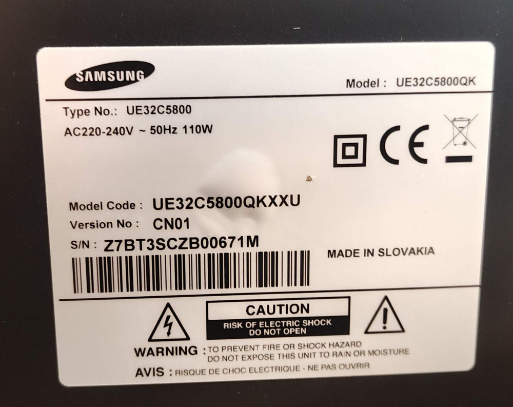 TV Samsung 32" UE32C5800 uszkodzony.