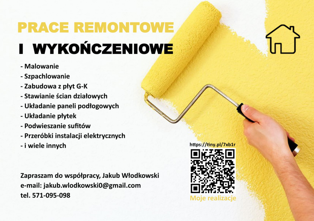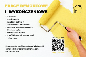 Dzien dobry swiadcze profesionalne uslugi remontowo-budowlane-wykonczenia wnetrz .Zlecone prace wykonuję solidnie i sumiennie tak, aby klient był zadowolony.