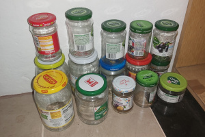 Słoiki widoczne na zdjęciu ponad 80 sztuk różnej wielkości na przetwory zamienię na płyn do prania bialy jelen uniwersalny litrowy i butelkę dobrego słodkiego wina.