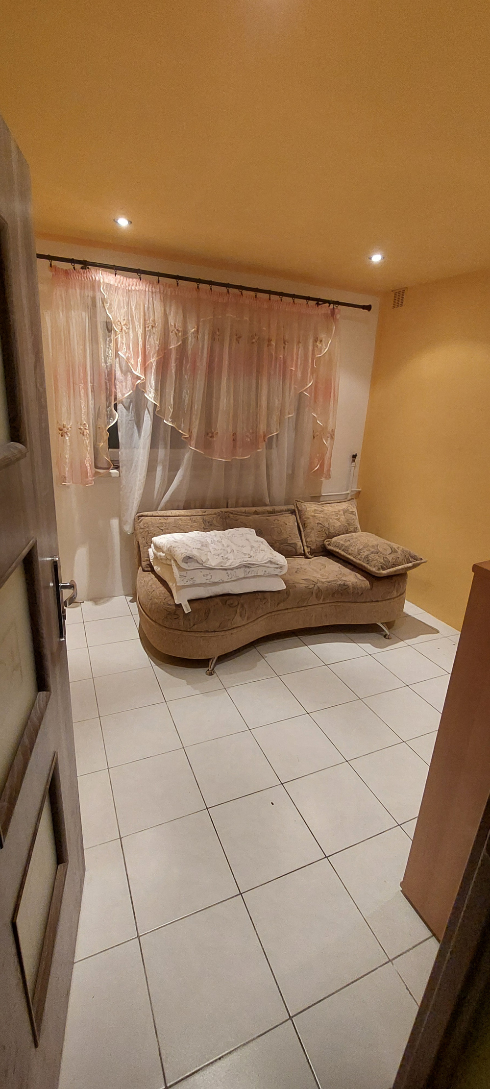 Pokój umeblowany z dużymi szafami i rozkładanym łóżkiem.