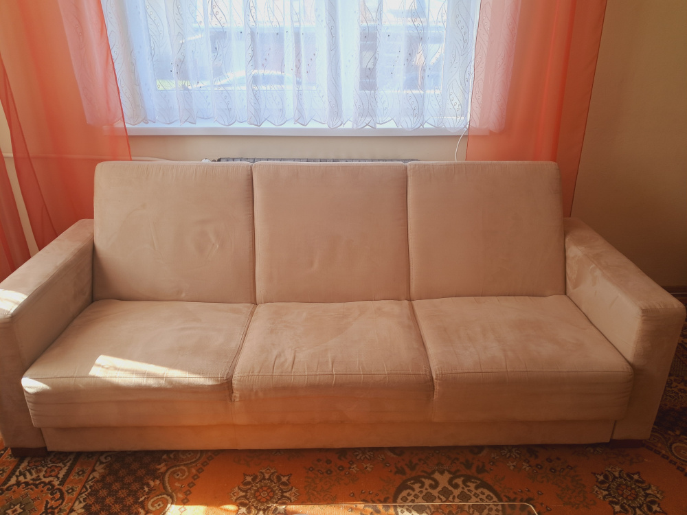 Mam do zaoferowania rozkładaną sofę dziecięcą. W ciągu dnia może pełnić funkcję sofy a nocą przekształcić się w jednoosobowe łóżko. Wyposażona jest w sprężyny bonell co w znacznym stopniu poprawia komfort użytkowania. Stan oceniam na bardzo dobry, była bardzo mało używana co potwierdza jej stan.