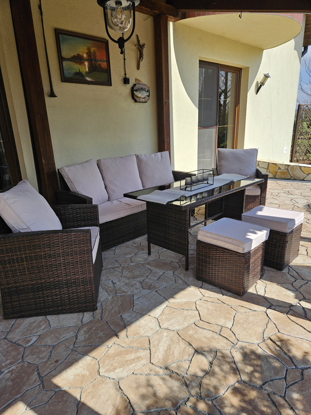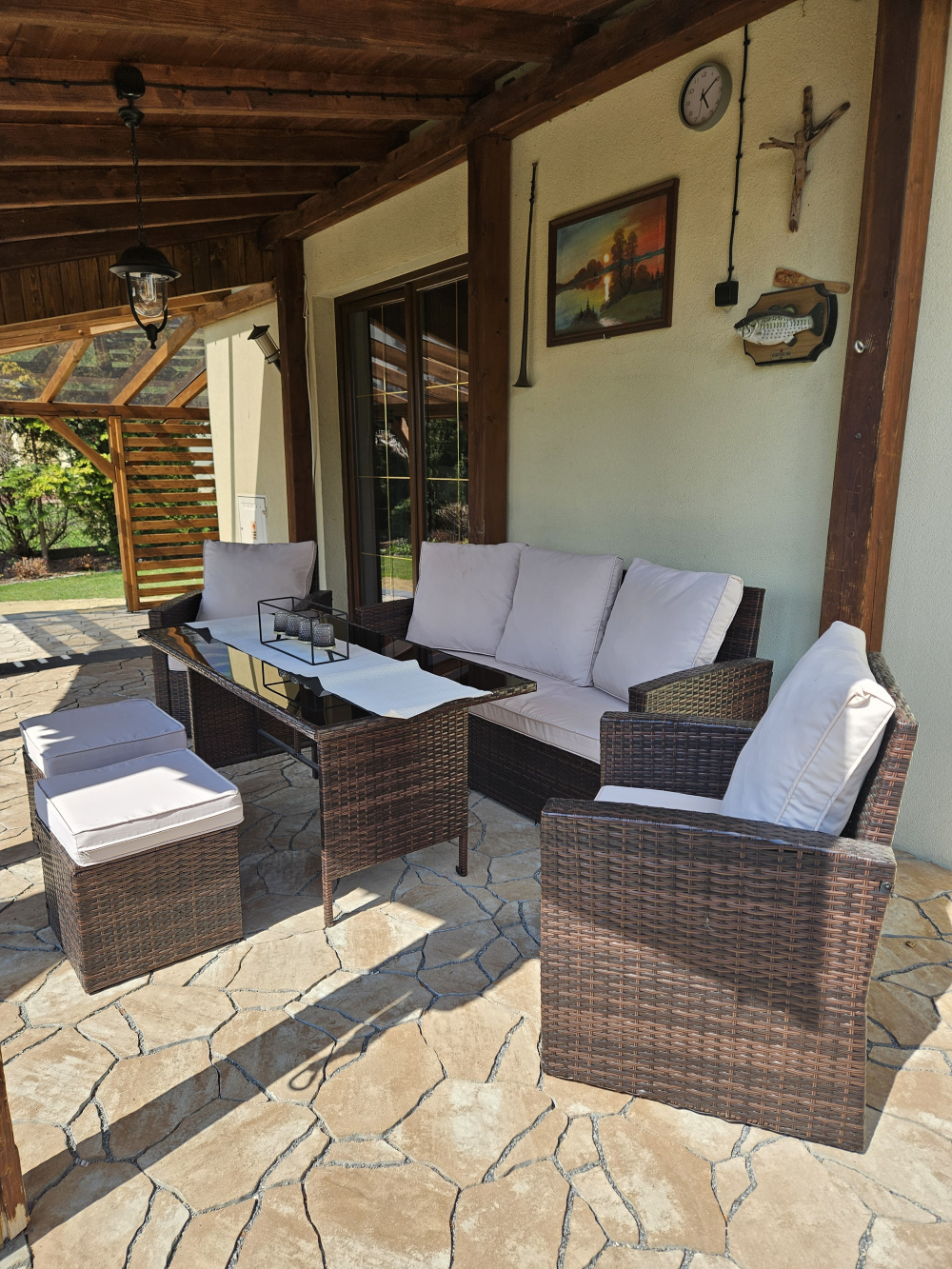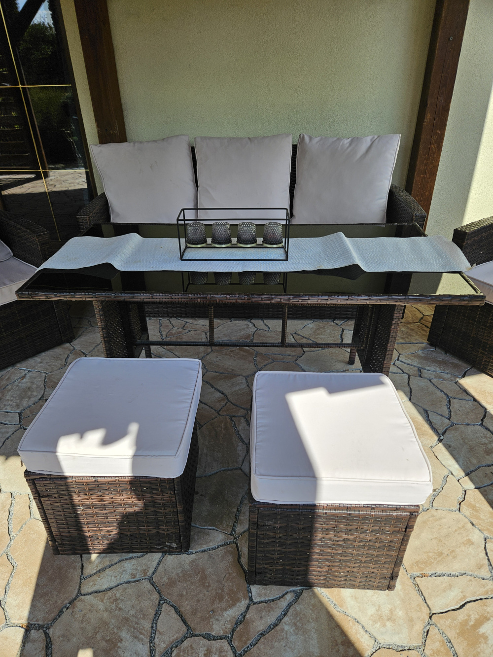 Sprzedam praktyczny komplet mebli do ogrodu dla 7 osób.