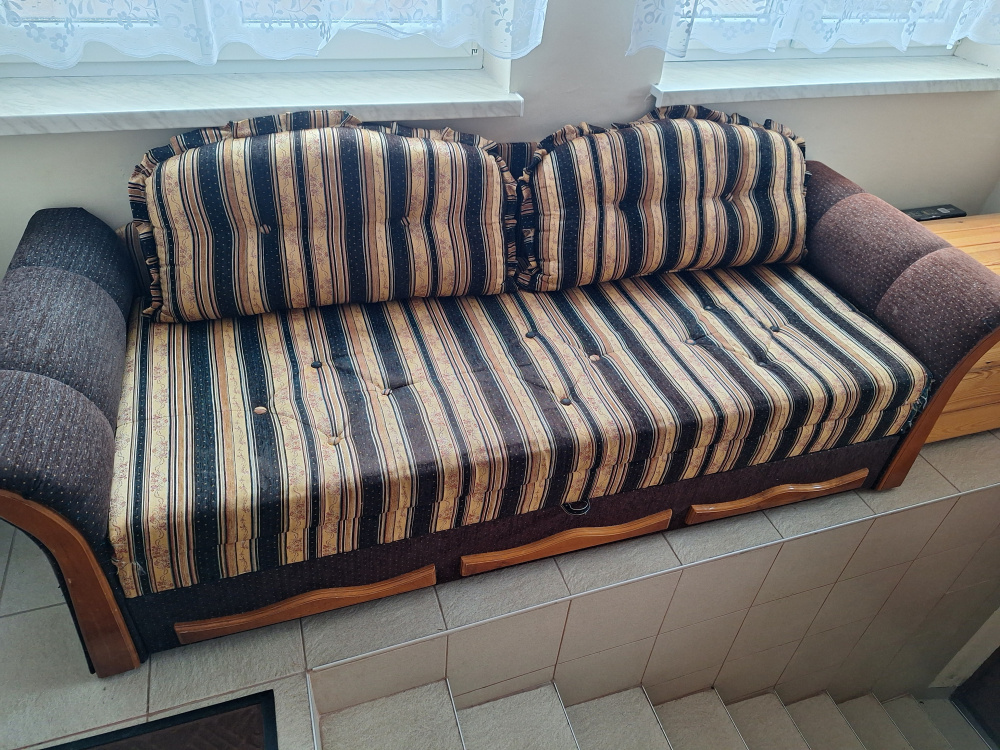 • Stan: Bardzo dobry – meble są czyste, stabilne, a mechanizm rozkładania działa bez zarzutu.