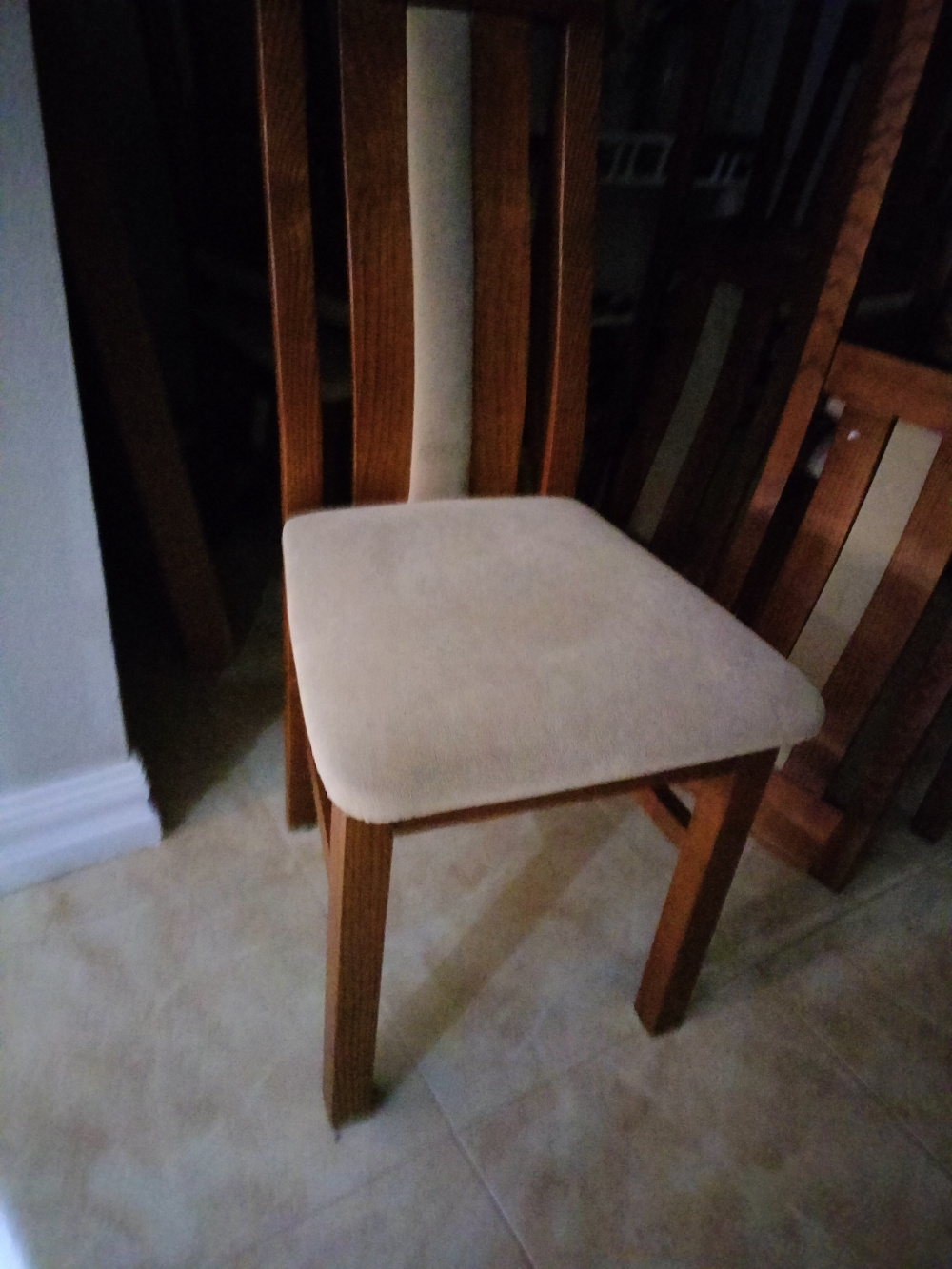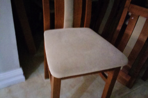 Sprzedam w bardzo dobrym stanie krzesła wraz z mało używanymi pokrowcami raz podczas komunii. Cena za sztukę