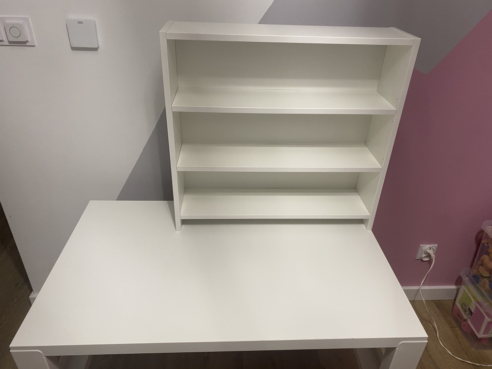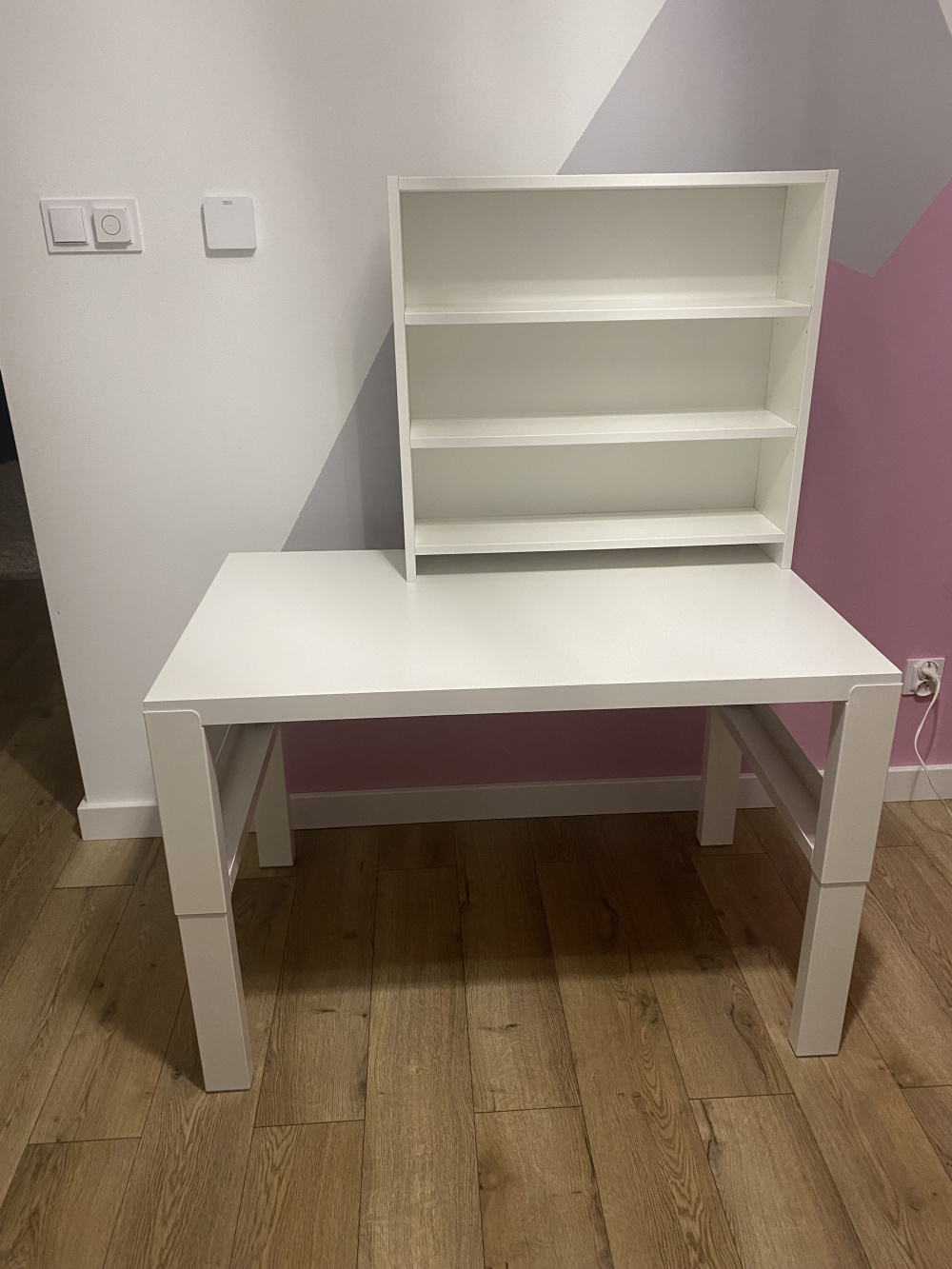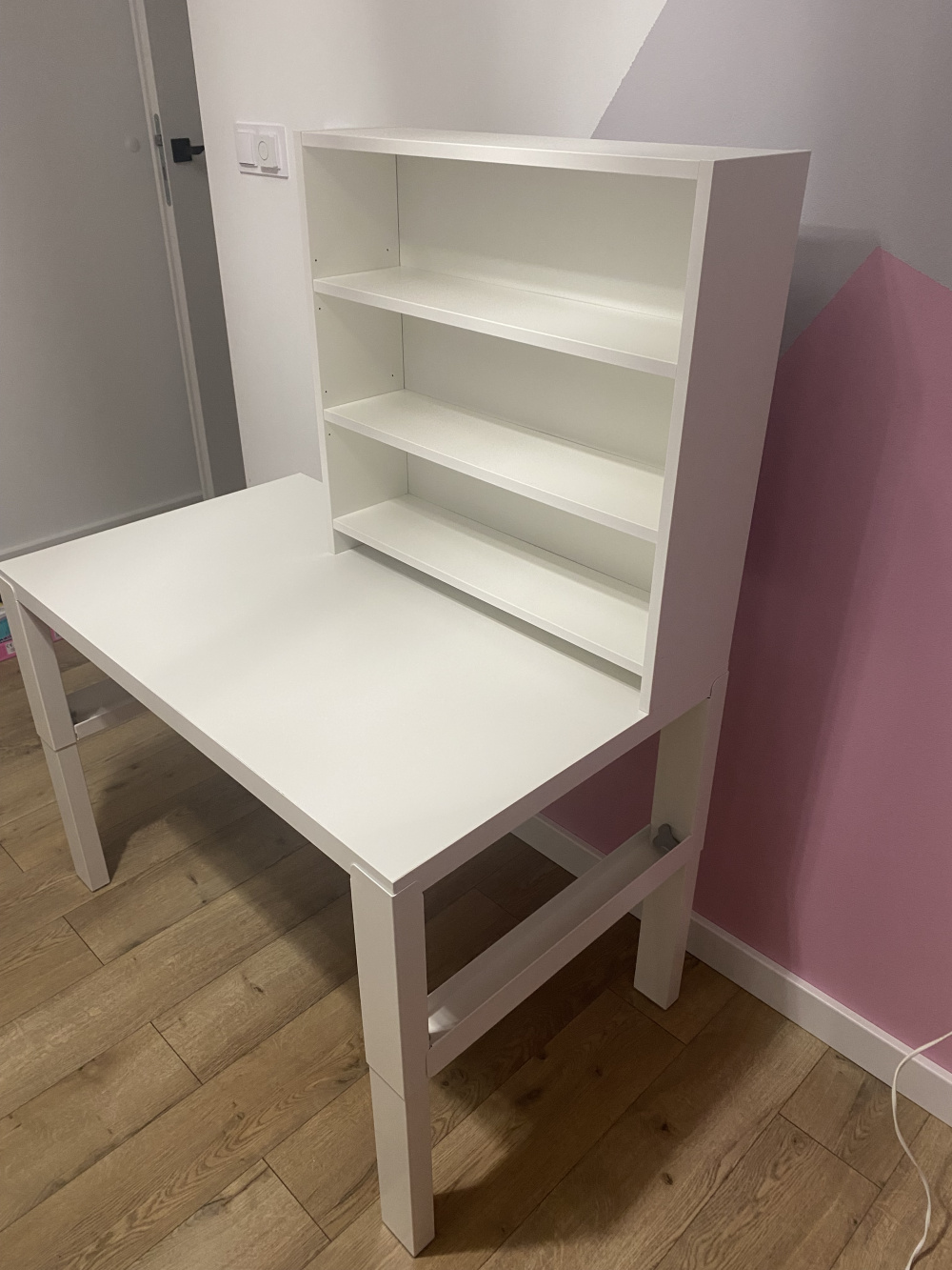 Witam, do sprzedania białe biurko z serii PAHL (Ikea). Mebel użytkowany przez jedno dziecko (kupiony jako nowy) w bardzo dobrym stanie. Biurko posiada trzystopniową regulację wysokości oraz nadstawkę, która pomieści dodatkowe akcesoria. Wymiary: szerokość 96 cm, głębokość 58 cm, minimalna wysokość 59 cm, maksymalna wysokość 72 cm (trzystopniowa regulacja: 59, 66, 72 cm). Odbiór osobisty w Krośnie.