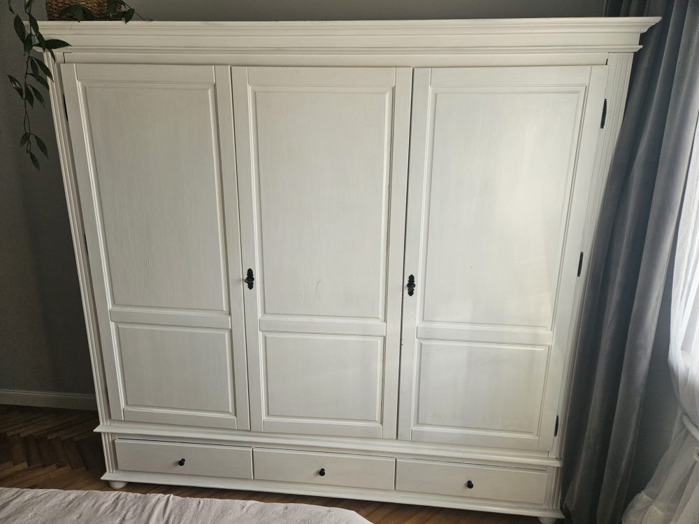 Sprzedam szafę trzydrzwiowa, sosnowa pomalowana na biało.