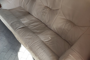 Mam do sprzedania trzy osobowy wypoczynek dwa fotele i stołek wszystko ze skóry naturalnej nowy zestaw taki kosztował 15tys kolor beżowy w dobrym stanie do oglądnięcia w Krośnie możliwy transport.