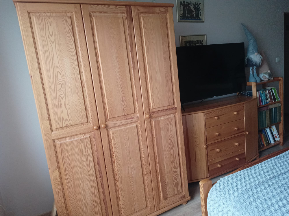Sprzedam komplet mebli sosnowych do sypialni,Szafa komod Łóżko oraz dwie szafki nocne ,stan bardzo dobry.