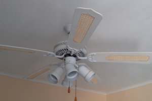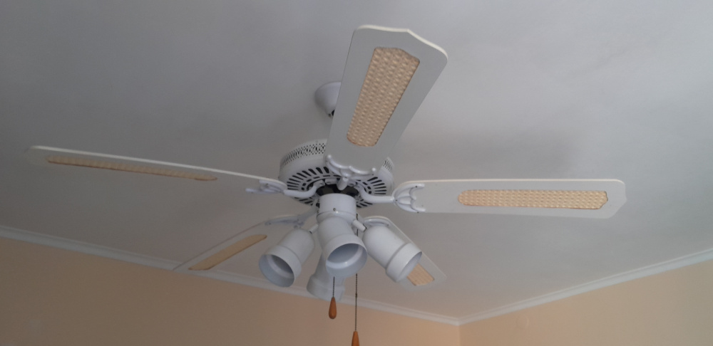 Lampowentylator sufitowy pięcioramienny biały 4 x metalowe oprawy, trzy prędkości obrotowe prawo lewo, do zestawu dodająę kondensator odpowiadający za wszystkie prędkości obrotowe śmigieł, wyłącznik oświetlenia oraz łańcoszki do wyłącznika.
