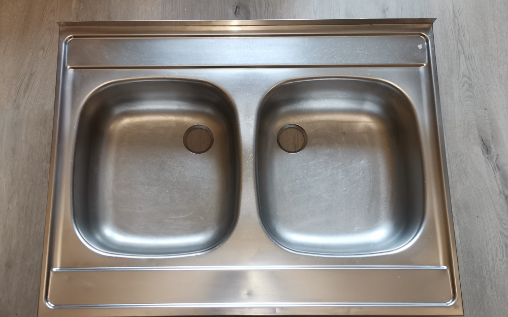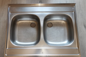 Sprzedam stalowy zlew dwukomorowy w dobrym stanie, naszafkowy. Wymiary 60x80 cm. Odbiór osobisty w Krośnie. Kontakt przez SMS.
