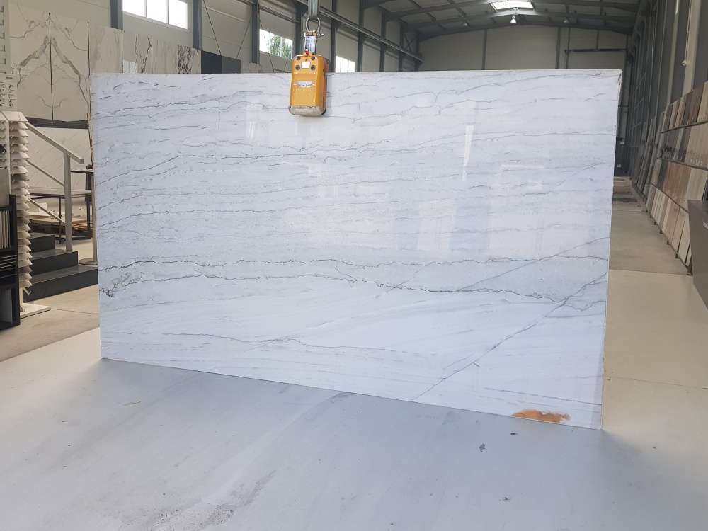 1) Macaubas White, grubość 2 cm, 6 płyt po ok. 6,5 m2 oraz 1 płyta po ok. 3,6 m2.