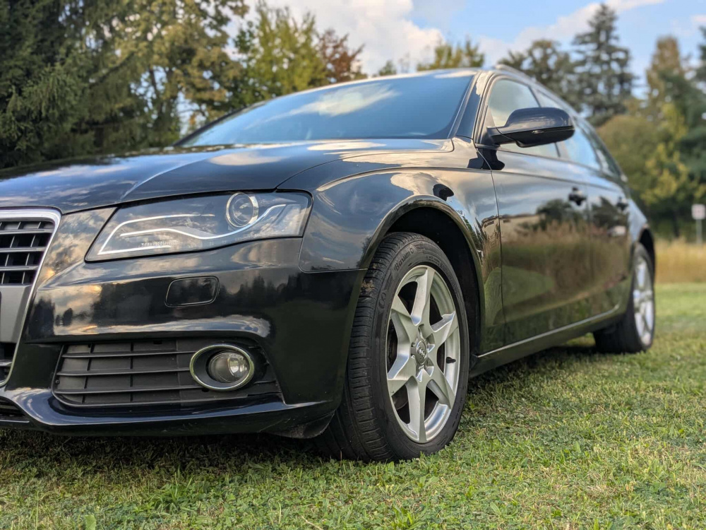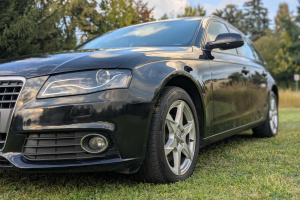 Audi A4 B8 Avant 2.0 TDI 143KM ze skrzynią manualną. Samochód sprowadzony z Niemiec, bezwypadkowy, garażowany. Technicznie i wizualnie w bardzo dobrym stanie, wymienione: rozrząd, olej i komplet filtrów, koło dwumasowe, klocki hamulcowe a także wykonana regeneracja klimatyzacji. W zestawie drugi komplet kół zimowych na felgach stalowych lub aluminiowych z A4 B7.