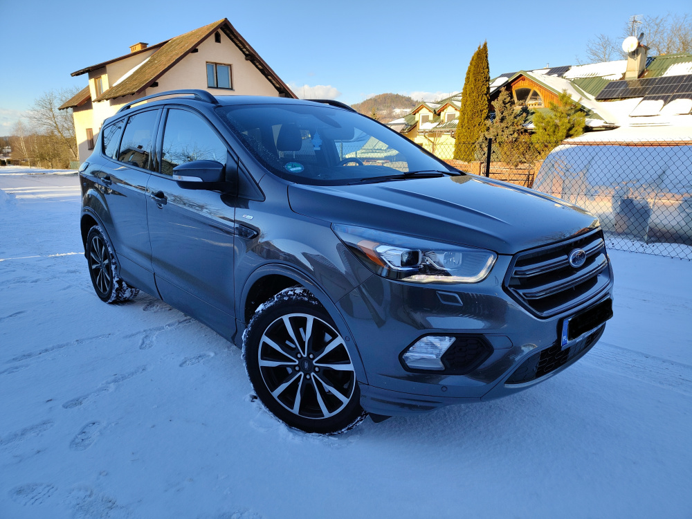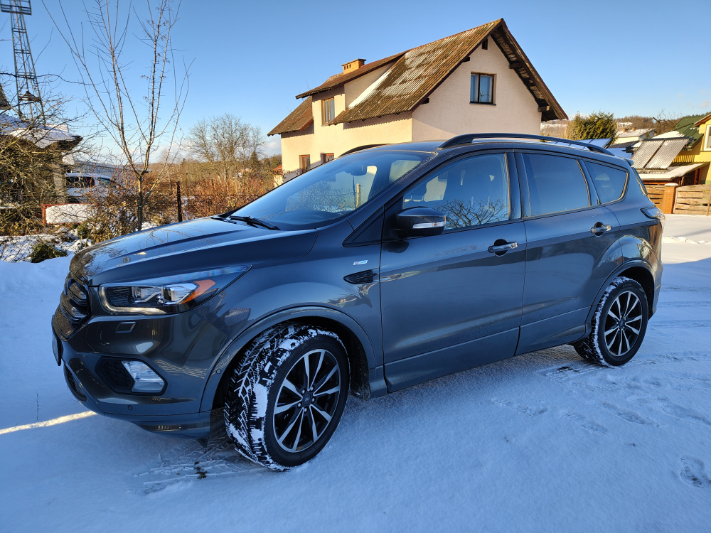 Sprzedam samochód Ford Kuga MK2 po lifcie z bardzo dobrym silnikiem 1.5 tdci 120 km w sportowej wersji ST LINE. Skrzynia manualna. Kolor magnetic grey. Rok produkcji 2017