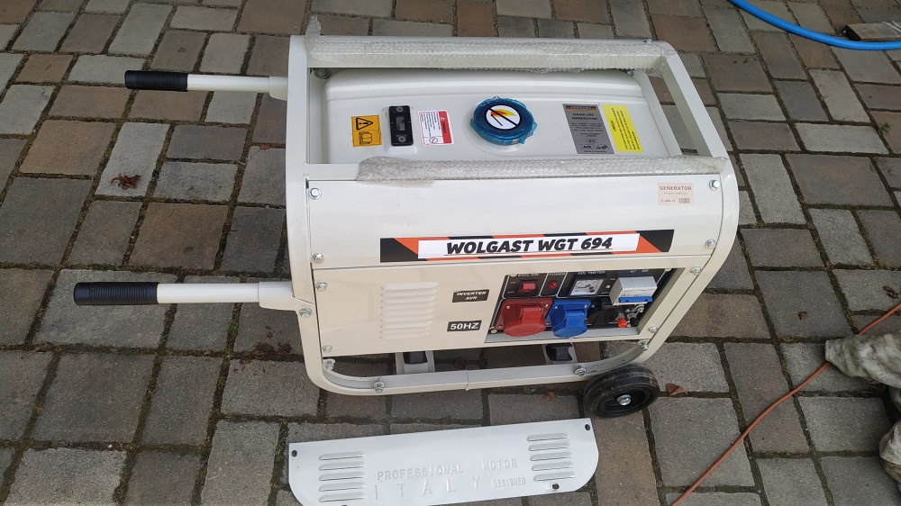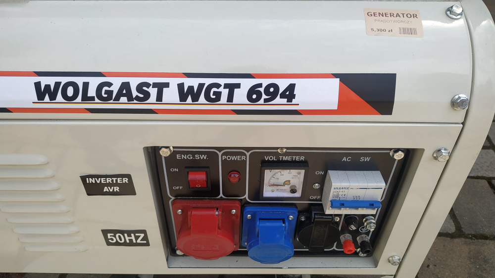 Do sprzedania nowy generator prądu WOLGAST WGT694. Dane: 3,8kW/220V, 6,7kW/400V Agregat zalany olejem celem sprawdzenia działania. W gratisie olej na wymianę. Zakupiony celem awaryjnego zasilania domu. Nigdy nie używany. tel. 608283506