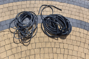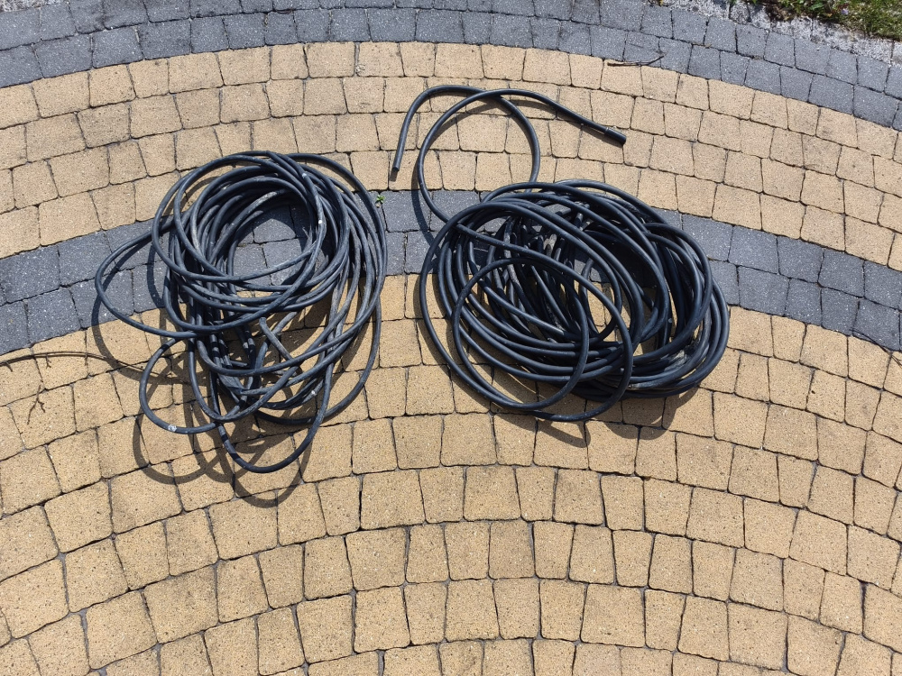 Sprzedam dwa odcinki przewodów elektrycznych czterożyłowych w otulinie gumowej. Odcinki o długości 25 i 19 metrów. Cena za całość 120 zł. Posada Górna.