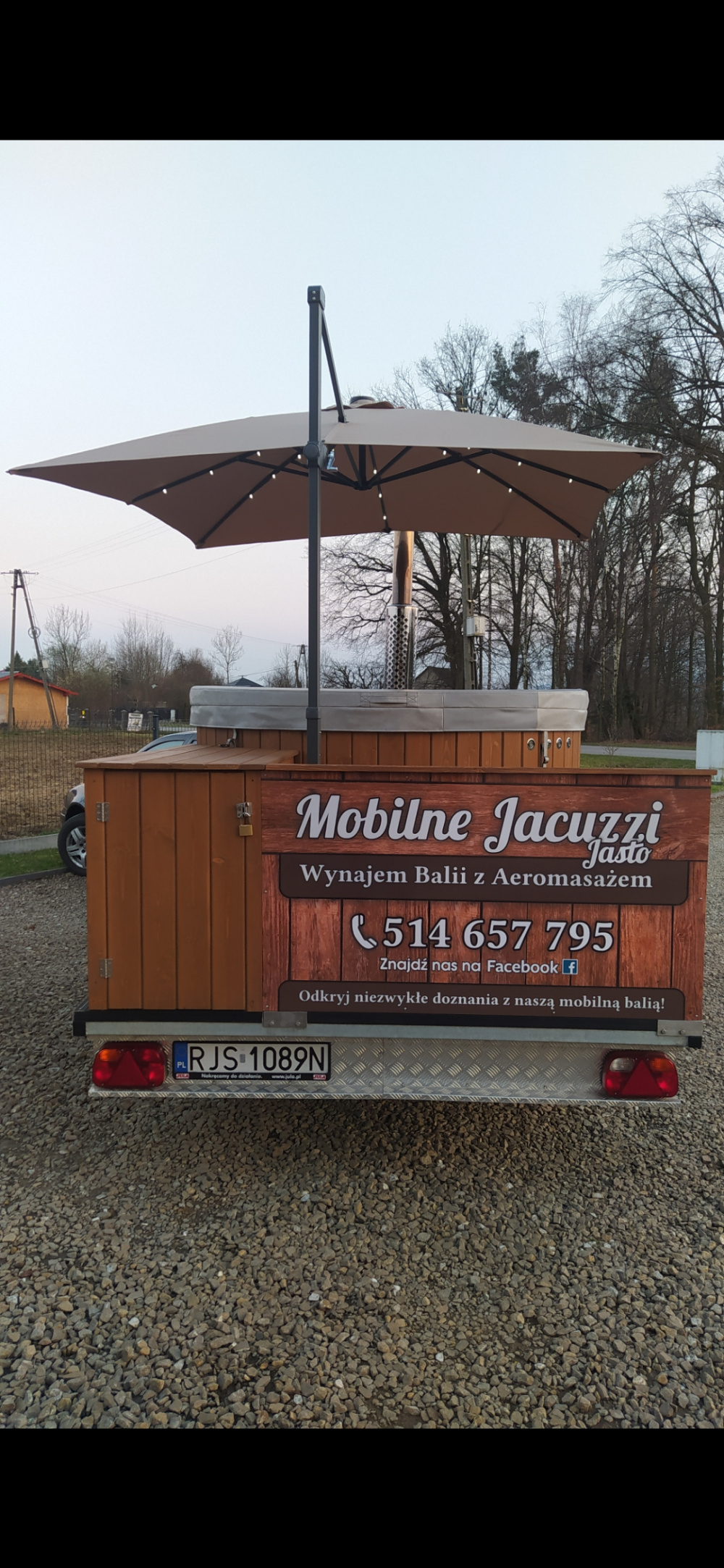 Nasze jacuzzi przymocowane jest do przyczepy, dzięki czemu dostarczymy Balię w dowolne wybrane przez Ciebie miejsce-wprost do Twojego ogrodu lub wynajętą przez Ciebie posesję-o ile teren jest w miarę równy, z dostępem do wody i prądu.