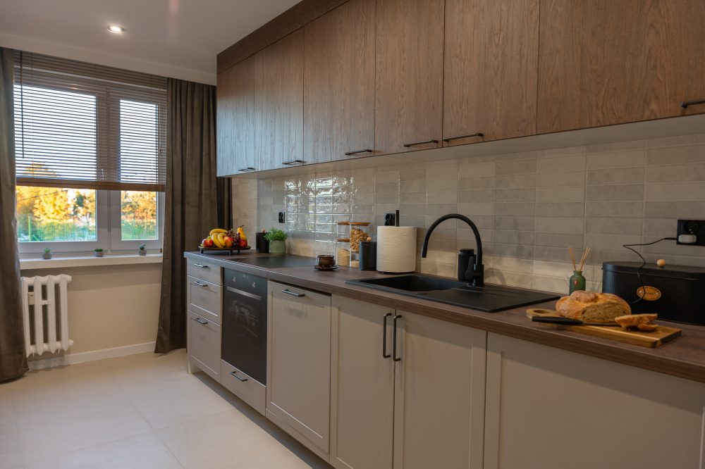 Salon z aneksem kuchennym i wyjściem na balkon – funkcjonalna i jasna przestrzeń