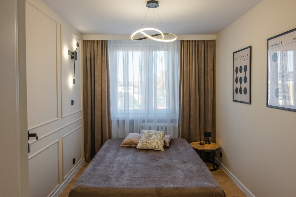 Mieszkanie jest bardzo jasne i dwustronne – okna wychodzą na północ i południe, co zapewnia naturalne światło przez cały dzień.