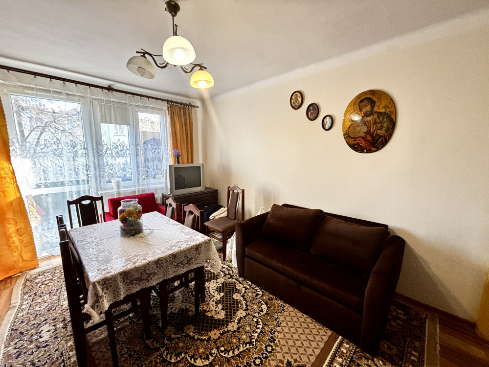 Mieszkanie składa się z 3 pokoi, nieprzechodnich i w pełni umeblowanych, kuchni, łazienki oraz odrębnej toalety. Salon ustawny, duży z wyjściem na duży bal