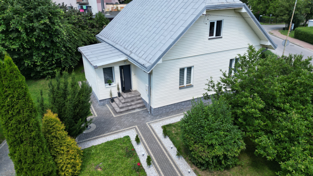 Dom zlokalizowany w na dużej, ładnie zagospodarowanej działce o powierzchni 2600m2, w miejscu odizolowanym od miejskiego hałasu.