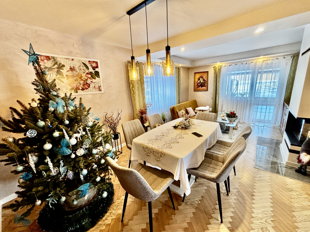 Centralnym punktem domu jest przestronny, reprezentacyjny salon z eleganckim kominkiem, który tworzy niepowtarzalny klimat i stanowi idealne miejsce do spotkań rodzinnych oraz wieczornego relaksu. Z salonu prowadzi bezpośrednie wyjście na duży taras idealny do wypoczynku, przyjęć oraz spędzania czasu na świeżym powietrzu. Salon z kącikiem jadalnianym jest płynnie połłączony z kuchnią.