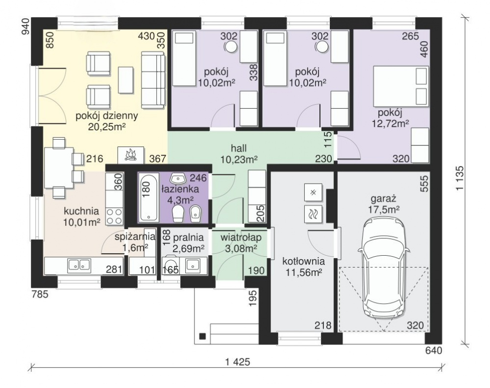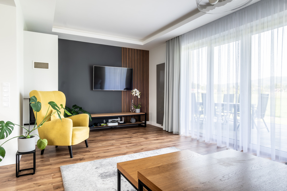 - ogrzewanie podłogowe w łazienkach i na parterze (oprócz salonu)