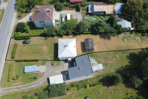 Budynek usytuowany bezpośrednio przy drodze gminnej asfaltowej w I linii zabudowy. Media: gaz, prąd wodociąg na działce, kanalizacja na sąsiedniej.