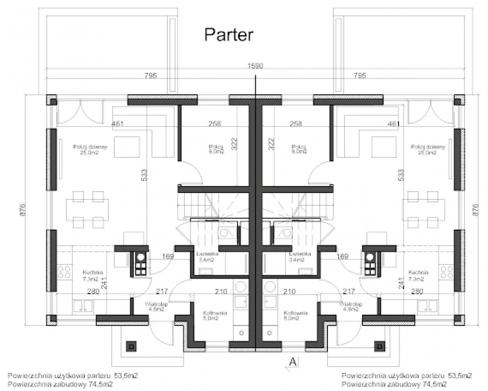 ... (pokaż całość)lon, łazienka, pomieszczenie gospodarcze z wyjściem na ogród, klatka schodowa.