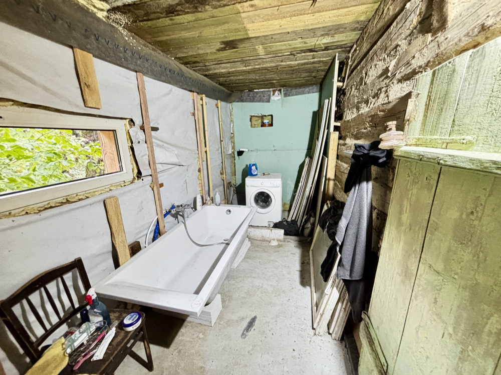 Na działce znajduje się drugi budynek drewniany w złym stanie technicznym. Miejsce zaciszne, z potencjałem do zagospodarowania, idealna pod ogród, taras, miejsce na ognisko lub małą zabudowę gospodarczą. Naturalne otoczenie zapewniające prywatność i poczucie przestrzeni.