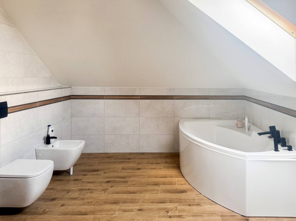 Jedno z pomieszczeń na poddaszu o powierzchni około 30 m2 zostało zaadaptowane na cele użytkowe, na przykład jako dodatkowy pokój, siłownię - zachowując standardową wysokość pomieszczeń.