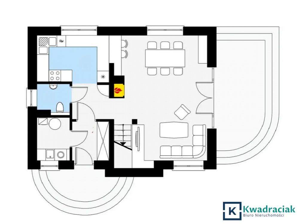 • Przyziemie (niski parter): wiatrołap, kuchnia, dwa korytarze, pokój, pomieszczenie gospodar
