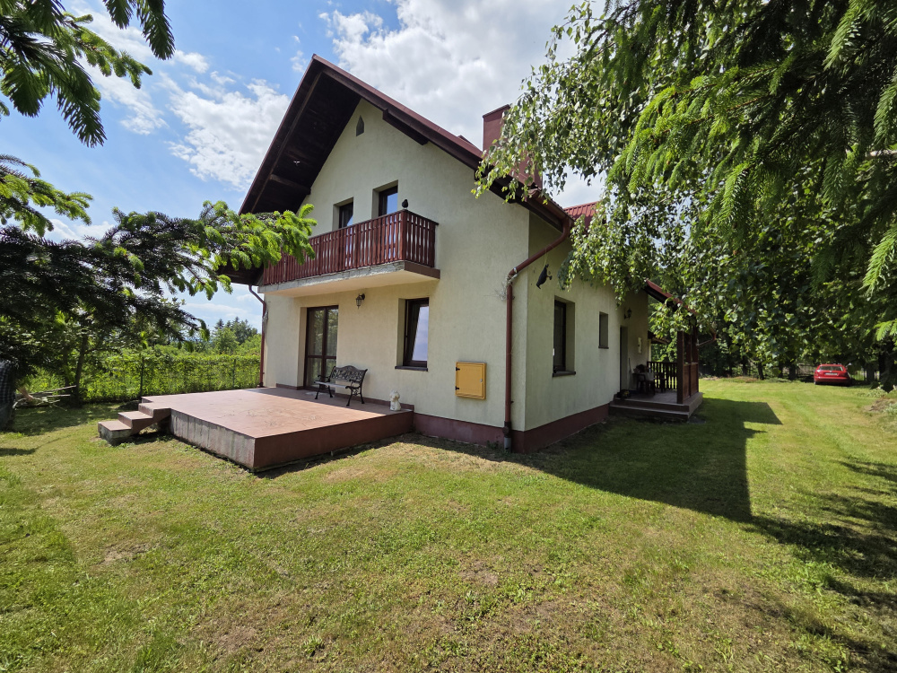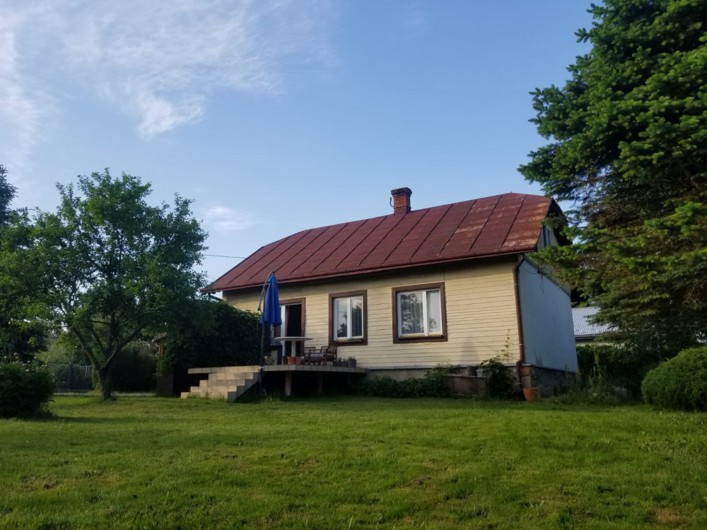 Sprzedam dom drewniany parterowy, częściowo podpiwniczony, 4 pokoje, kuchnia, łazienka, przedpokój. Strych z potencjałem do adaptacji na mieszkalny, duży taras. Wiata przylegająca do budynku, jedno stanowisko do garażowania samochodu.